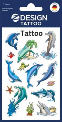 Matrica, tetoválás, 1 ív, 76x120 mm, AVERY ZWECKFORM, "Z-Design No.56439", delfinek tengeri csillagokkal
