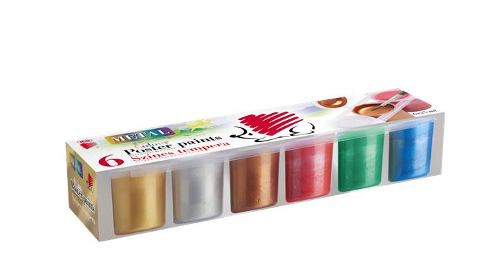 Tempera készlet, tégelyes, ICO "Süni", 6 különböző metal szín