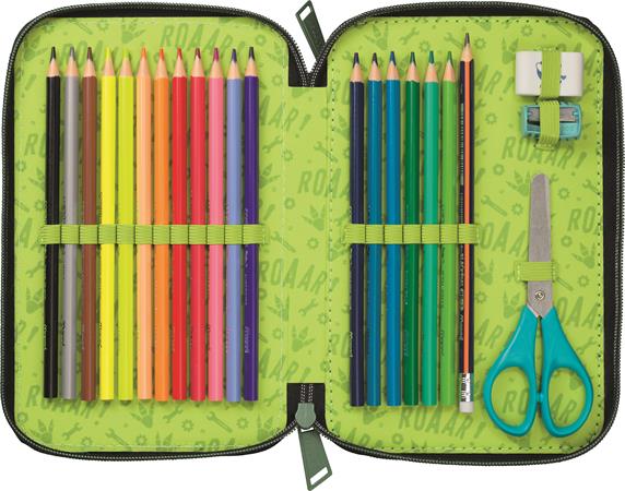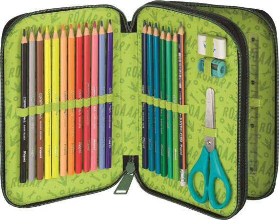 Tolltartó, töltött, 2 emeletes, cipzáras, MAPED, dinoszaurusz