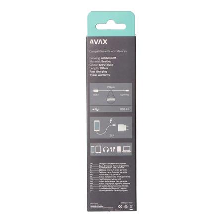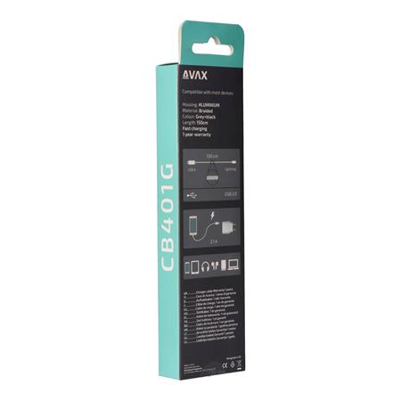 Töltőkábel, USB-A - lightning (Apple), 20W, 1,5 m, AVAX "CB314 Steel", acélszürke