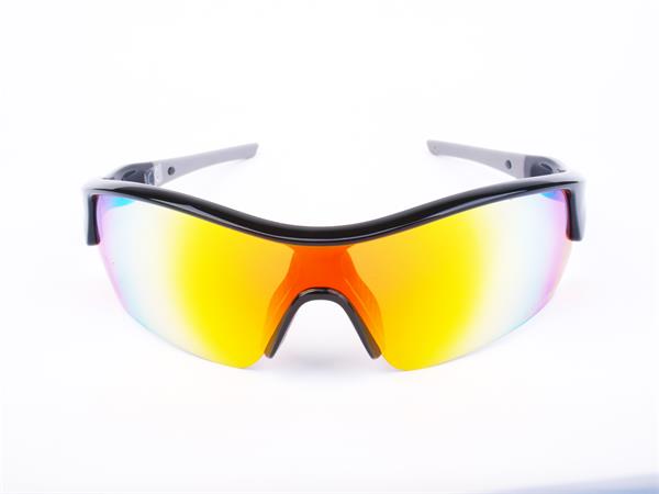 Sportnapszemüveg borostyánszínű HD lencsével, színátmenetes lencsebevonattal, fekete műanyag kerettel.